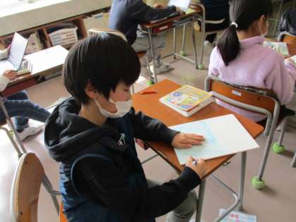 自分探検で作ったアルバムも完成まであと少し。自分らしい表紙にしようと一生懸命取り組みました。