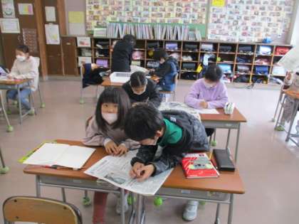 今日は、同じ部分に気を付けて漢字を書きました。ペアで協力して探す姿がありました。