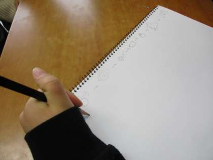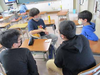 休み時間、女子達が集まっていました。何をしているのか覗いてみると、絵しりとりをしていたようです。その一方、教室の反対側では、楽しそうに話す男子の姿がありました。休み時間は、いろいろと人間模様が見える時間です。