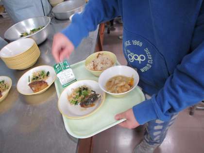 いいですね!いいですね!今日もおいしくいただきました。完食!完食!調理員さん、1年間ありがとうございました。