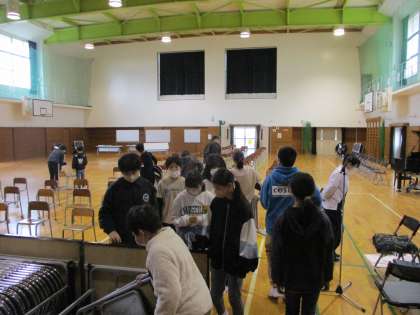 明日の入学式に向けて5年生と一緒に準備を頑張りました。