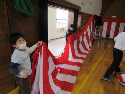 明日は入学式。どんな1年生がやってくるのだろう。子供たちは楽しみです。気持ちよく新入生を迎えるために、5年生も準備をがんばりました。一生懸命に働く5年生。ステキです。