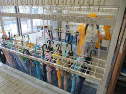 傘をちゃんと巻いてから立てていますね。立派です。