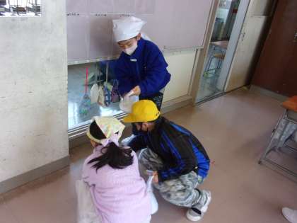 「こんなに ほこりがついたよ。」と言いながら、すみずみまで掃除を頑張っていました。