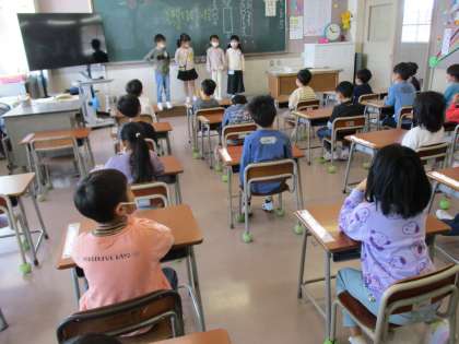 自分の名前と好きな○○(食べ物、キャラクター、動物など)を紹介しました。はきはきと話す姿が花丸です!