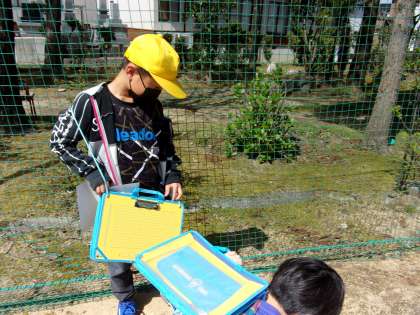 学校の周りには、どのような春の植物や生き物がいるのかを調べました。