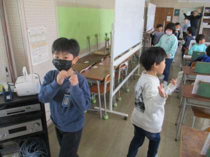 音楽のリズムに合わせて、体を動かしたり踊ったりしました。
