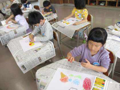 自分の好きなものを描きました。うれしそうにお話しながら描いていました。