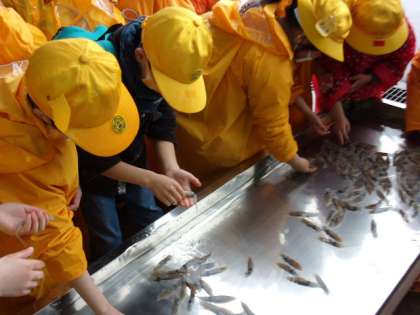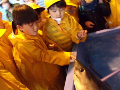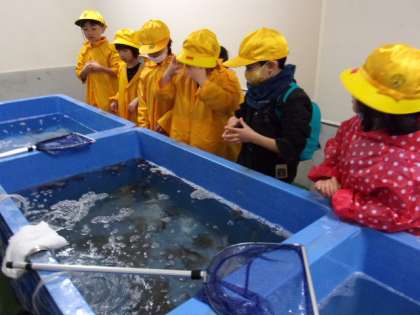 ホタルイカ見学会に行ってきました。ホタルイカを触ったり、光っているのを見たりしました。