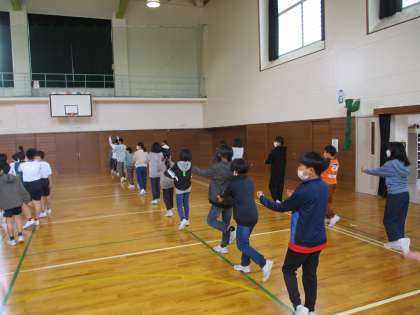 体力つくりの時間に「天瀬っ子ソーラン」を練習しました。