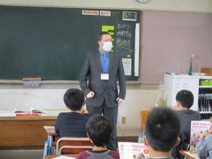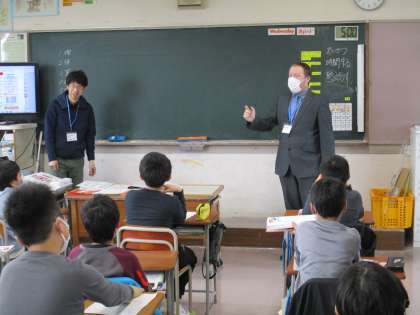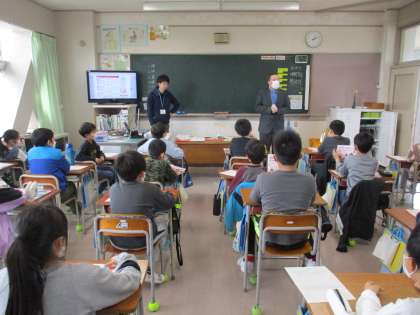 ALTとの学習がスタート。子供たちは新しい先生を前に笑顔です。