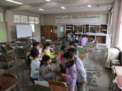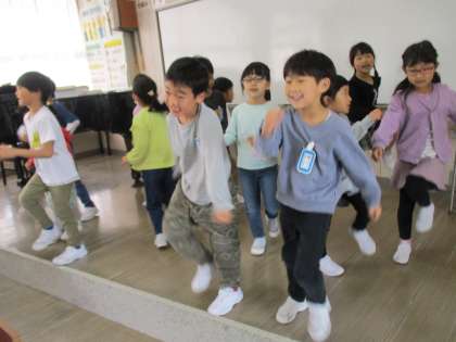 「さんぽ」を歌いました。拍に合わせて手を叩いたり、行進したりしました。ノリノリです。