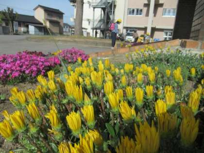 登校後、すぐに前庭を掃いてくれました・・・ 職員室横の花壇に、珍しいお客様が・・・