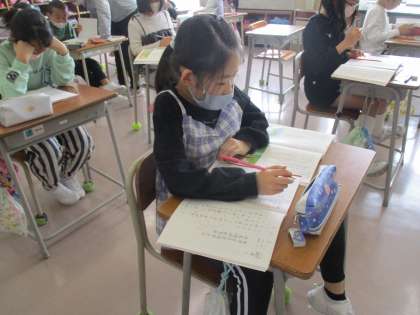 集中して静かに取り組んでいます。 ノートも丁寧にとっています。