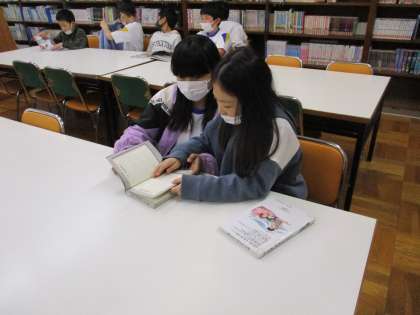 図書室を利用する機会を増やしています。活発な読書活動を通して、豊かな情操を育んでいきたいと考えています。