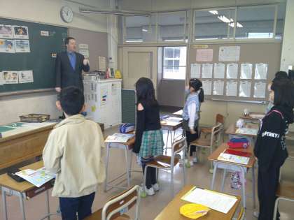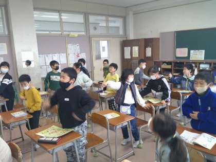 3年生は調子を尋ねる表現、4年生は天気や遊びの言い方を学びました。