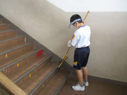朝の清掃時間、校舎をきれいにしています。真剣に取り組もうとする態度がどんどん育っていくことを願います。