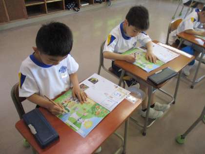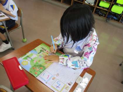 鉛筆の持ち方や姿勢に気を付けて書いています。