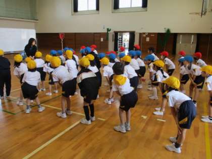 運動会に向けて、玉入れの練習をしています。ダンスも特訓中です!