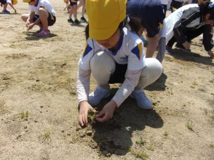 運動会に向け、グラウンドの石拾い、草むしりをしました。