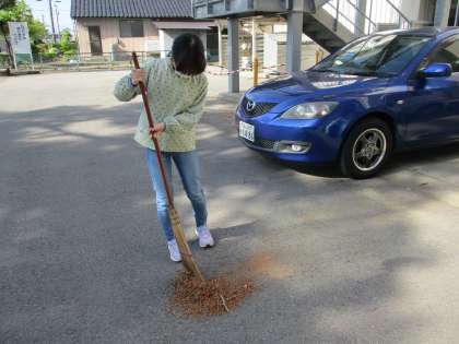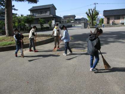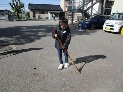 登校した後、前庭をきれいに清掃している環境委員会の子供たちがいました。学校のために働く姿がステキです。