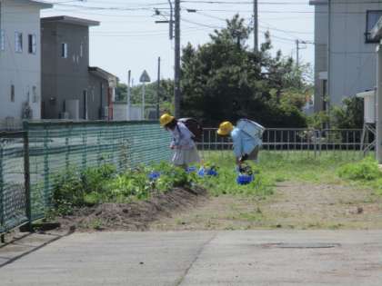 やさいに水をあげています。早くおおきくなあれ!
