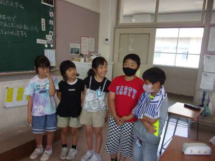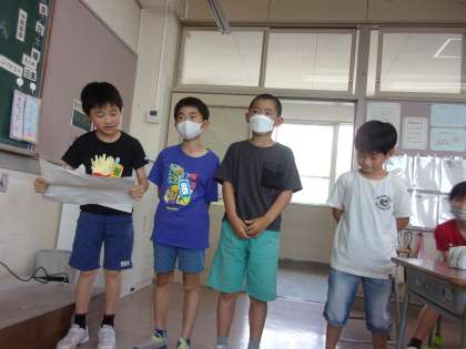 今日は、水橋中部小学校と水橋東部小学校と、リモートで3校合同校外学習でやる遊びを発表し合いました。