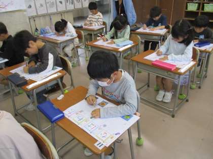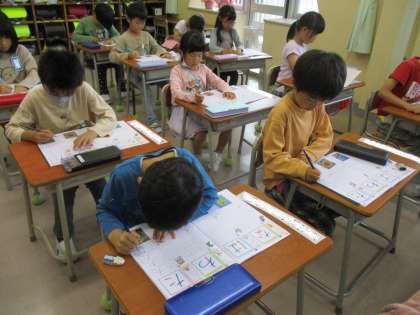 ひらがなの学習が進んでいます。 姿勢もよいですね!
