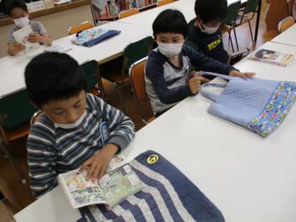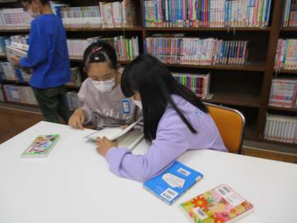 今日も図書室へ。「図書室が好き。」「本が好き。」という声が増えてほしいですね。