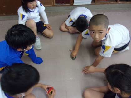 休み時間は、「こま」で楽しそうに遊んでいます。