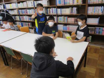 大休憩、図書室で本を読んでいる5年生たちがいました。どんどん図書室を利用する人が増えるといいですね。