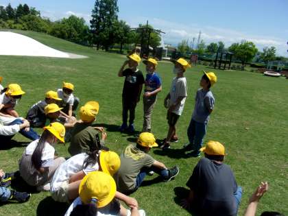 岩瀬スポーツ公園では、「好きな物当てようゲーム」「もうじゅうがり」「ケイドロ」をしました。最後は、みんなで遊具で遊びました。