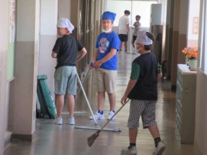5日(月)朝の様子 公開日 2023/06/05 更新日 2023/06/05 5年生 月曜日は、朝清掃の日です。 みんな、がんばっています。 よりきれいになった校舎で、今週も気持ちよくスタートできます! 今週は、「真夏日」(30度以上)となる日があるようです。 「こまめな水分補給」「マスクを外す」などして、熱中症に注意しましょう。