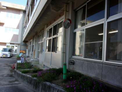 前庭では、環境委員の子供たちが花壇のお世話や清掃に取り組んでいます。進んで仕事を見付けています。