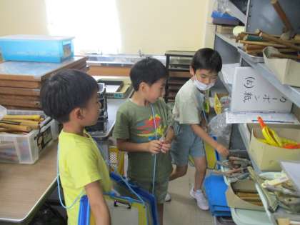 「図工準備室に、いろんな大きさのローラーがあるよ。」