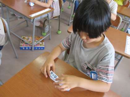 計算カードでの練習を始めました。たし算は、これからの学習の基礎となります。まずは、確実に! 毎日1回でもやってみましょう。