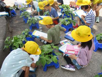 アサガオがどんどん生長しています。よ〜く見て、たくさんのことを発見しました。