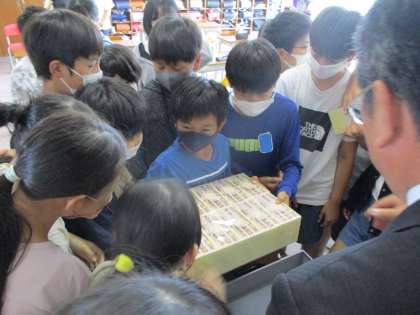 クイズや動画を交えて楽しく学んだり、1億円の重さを体感したりしました。