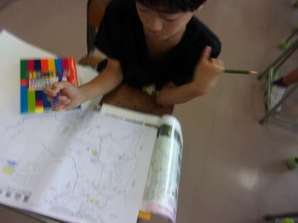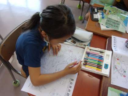 社会科の時間に、富山市で作られている作物を調べ、地図にまとめました。