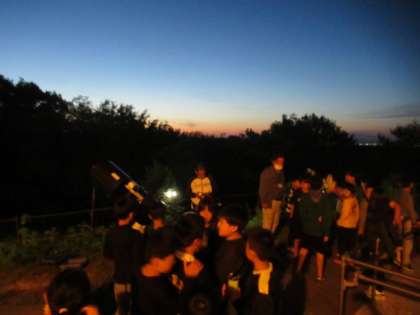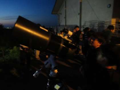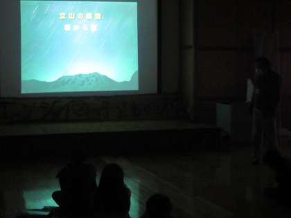 日が落ちて、きれいな夜空になりました。富山県天文学会から講師をお招きして、「星空観察」を行いました。