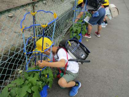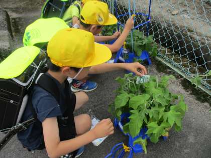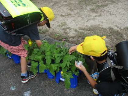自分のアサガオの生長の様子に合わせて、お世話の仕方を考えながら活動しています。