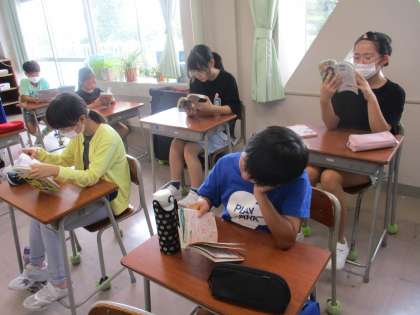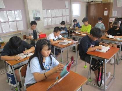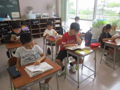 水曜日の朝は、読書の時間。真剣に本を読む子供たちです。