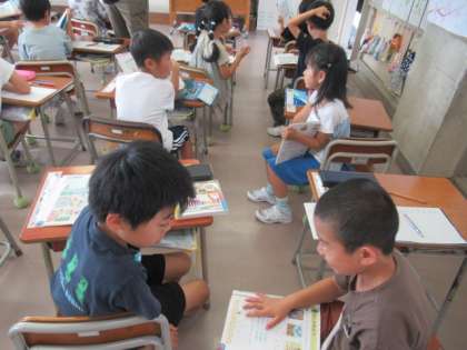 教科書を見せながら話したり、「うん、うん」と、うなずきながら聴いたり・・・ペアでの聴き合いも上手になってきています。