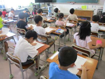 基礎計算チャレンジです。毎日、計算カードに取り組むことで、確実に、速く答えを出せる子が増えてきています。