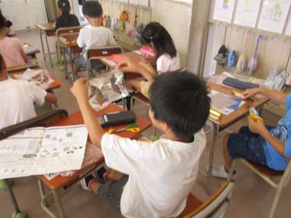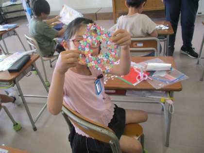 紙を折って、切って、開くと・・・ 「わあ!こんな形ができた」
