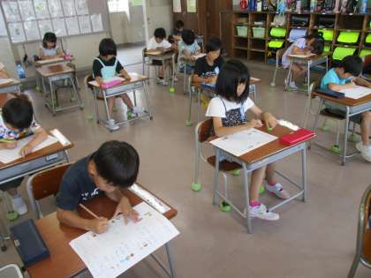 「学習のたしかめ」です。 1学期の学習は、ばっちりかな? 明日は、算数です。