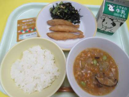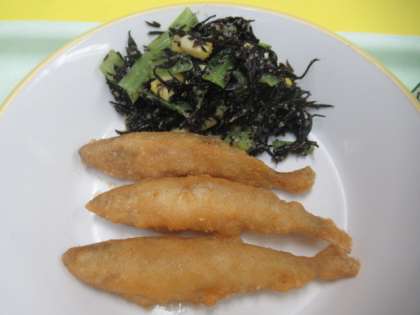 10日(月)今日の献立 公開日 2023/07/10 更新日 2023/07/10 給食室 ・ごはん ・牛乳 ・わかさぎのフリッター ・ひじきのごま和え ・冬瓜のそぼろあん ・野菜ふりかけ ※11時40分、検食終了。異常ありません。 今日も美味しく出来上がっています。