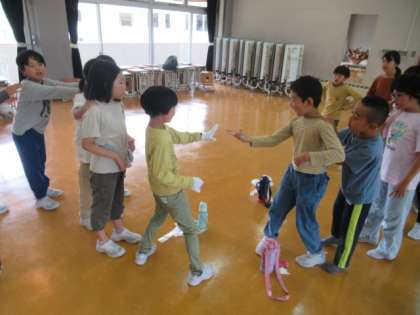 みんなの大好きな歌(「にじ」など)を歌ったり、ゲーム(「じゃんけん列車」「リーダーは誰だ」)をしたりして、仲を深めました・・・