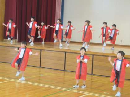 明日22日(土)当日14時00分頃から「ふるさと会館」で、本校2年生が「ダンス」、3・4年生が「合唱」を披露します。