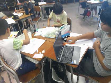 つくった俳句に似合う絵を画用紙に描きます。熱心に取り組む子供たちでした。
